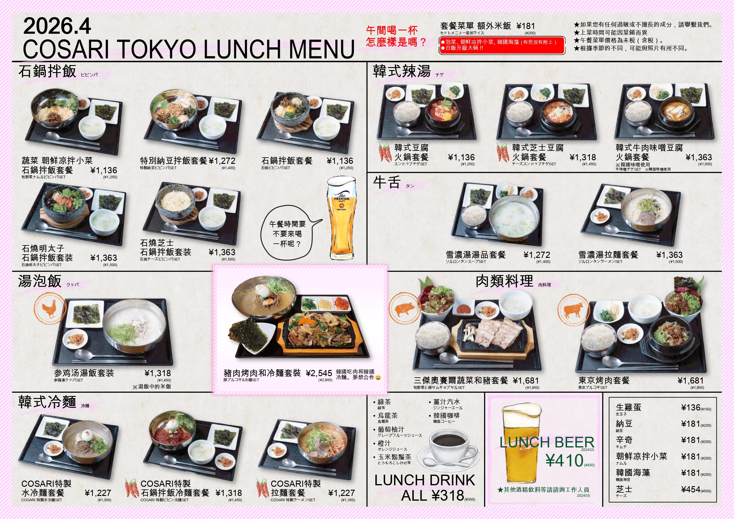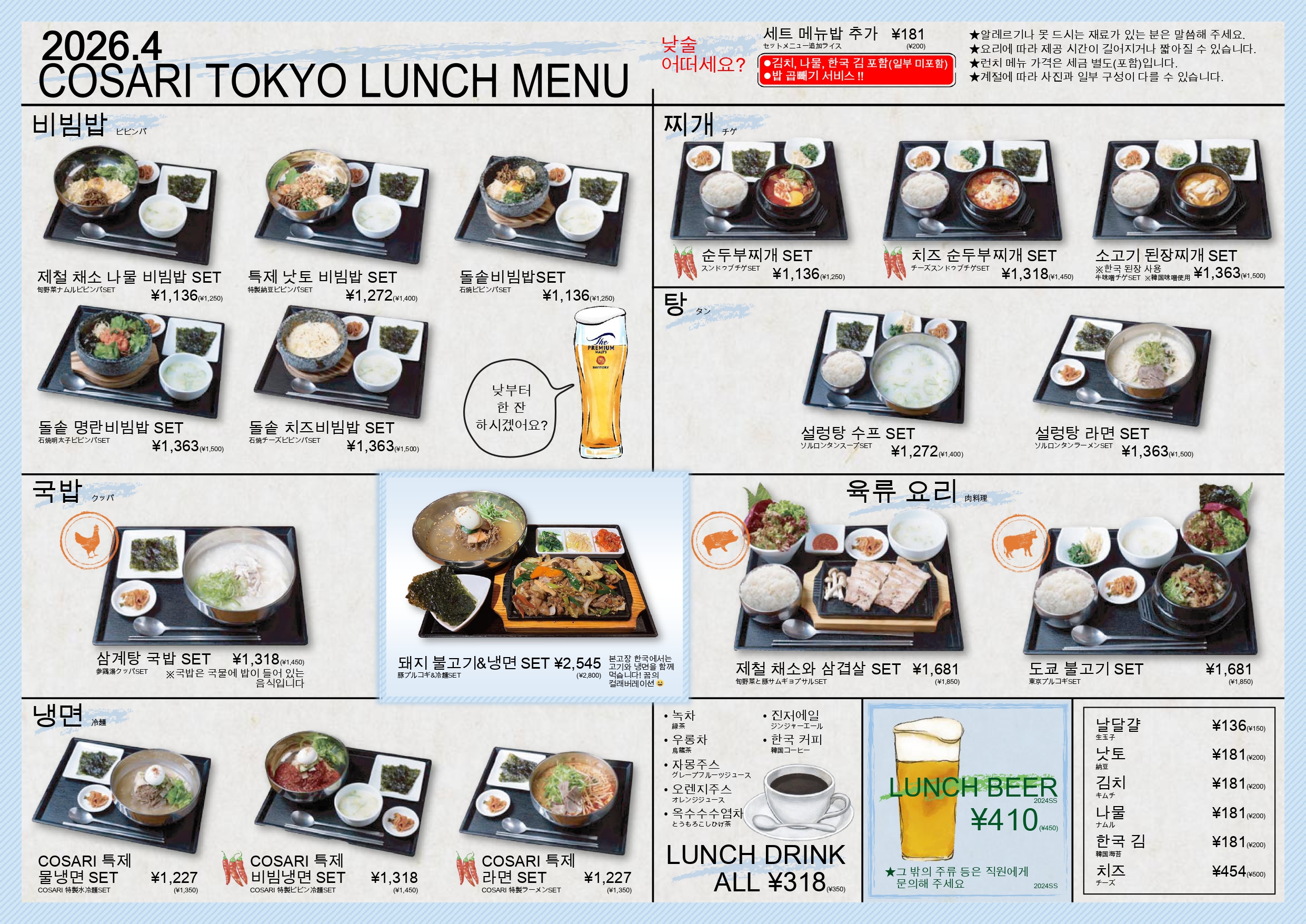 キムチや、サムギョプサルなどの伝統的な料理から、新しいアプローチが取り入れられた創作料理まで様々な選択肢をご用意しております。